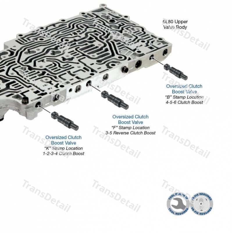 "B" Stamp: 4-5-6 Clutch Boost Valve "F" Stamp: 3-5-Reverse Clutch Boost Valve "K" Stamp: 1-2-3-4 Clutch Boost Valve