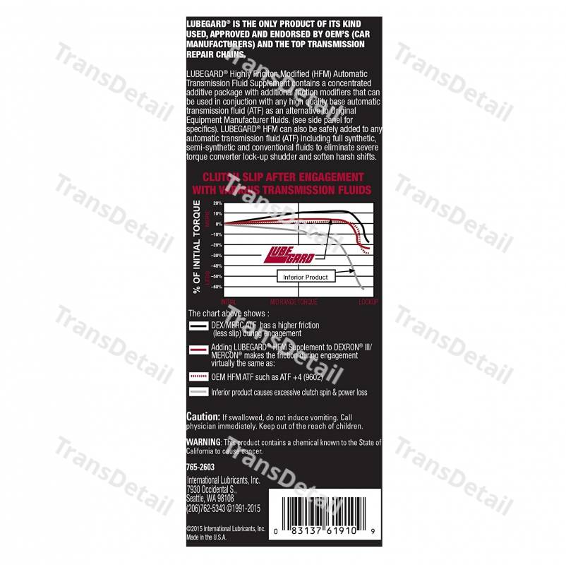 - Избавляет от потребности в дорогостоящих высокофрикционных ОЕМ-жидкостях - Изменяет фрикционные свойства DEXRON / MECRON до соответствия высокомодифицированным жидкостям - Рекомендован для устранения вибраций в АКПП FORD AODE и 4R70W ( не использующих MECRON) - Не содержит диалкил дитиофосфата цинка (ZDDP) - Обладает всеми качествами стабилизатора LUBEGARD The original ATF conversion formula! Only product of its kind Used, Endorsed, Designated